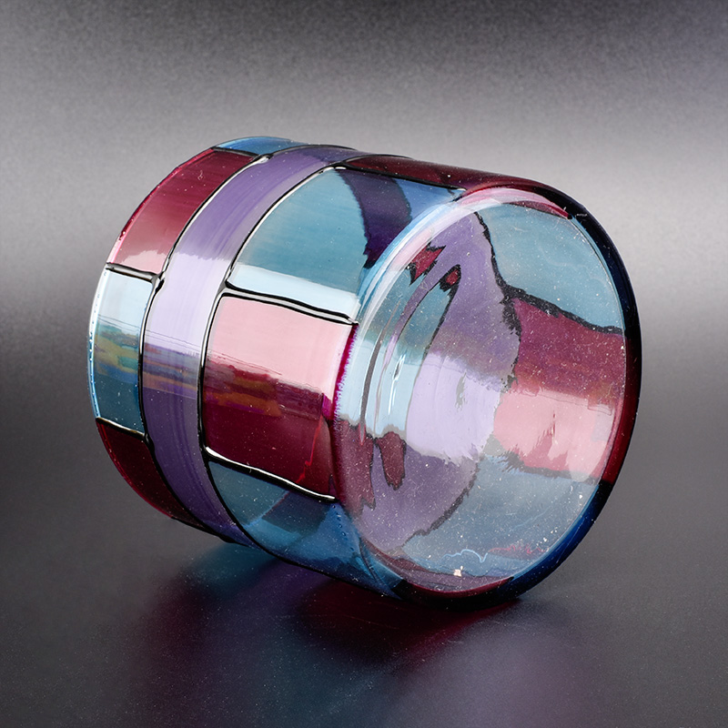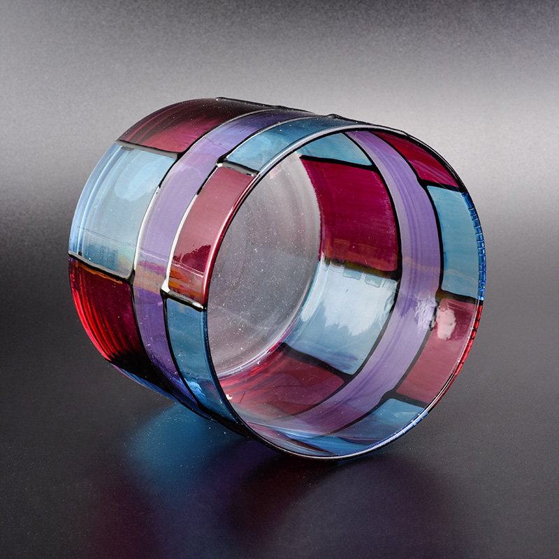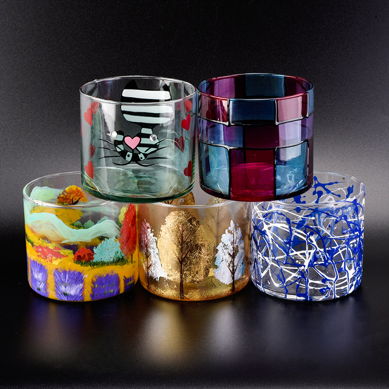 Cylinder glass vessel with hand painting, colorful glass candle jars |