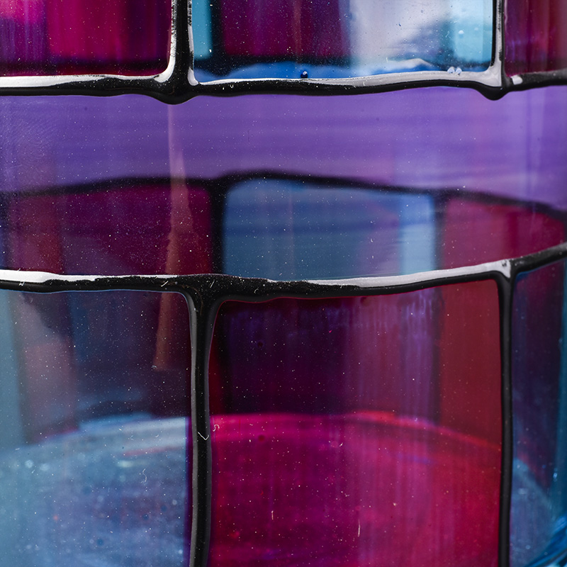 Cylinder glass vessel with hand painting, colorful glass candle jars