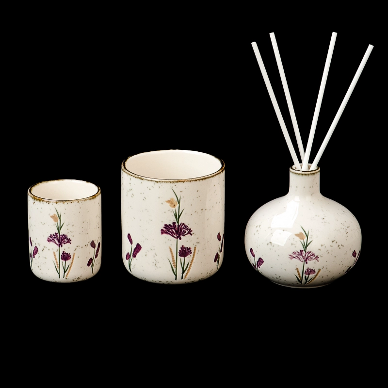 This gorgeous ceramic candle jars matches with any home decoration furniture, for example, dining table, cooking bench, dressing table, tea table, coffee bar and bookshelves. It is also easy going with restaurants and hotels. When the candle is lighted, the room is filled with aroma!