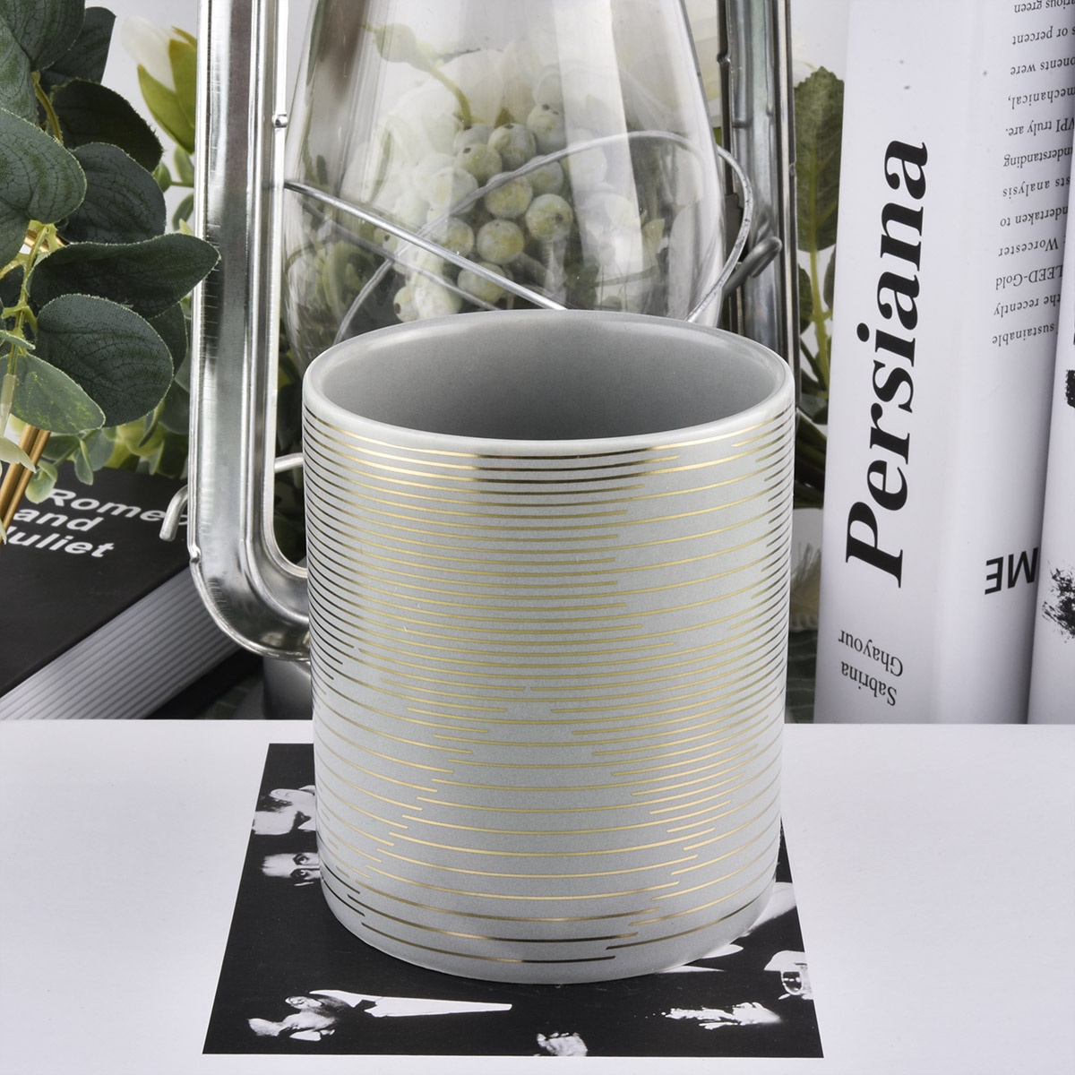 manufacturer empty grey porcelain luxury ceramic candle jars in bulk with plating